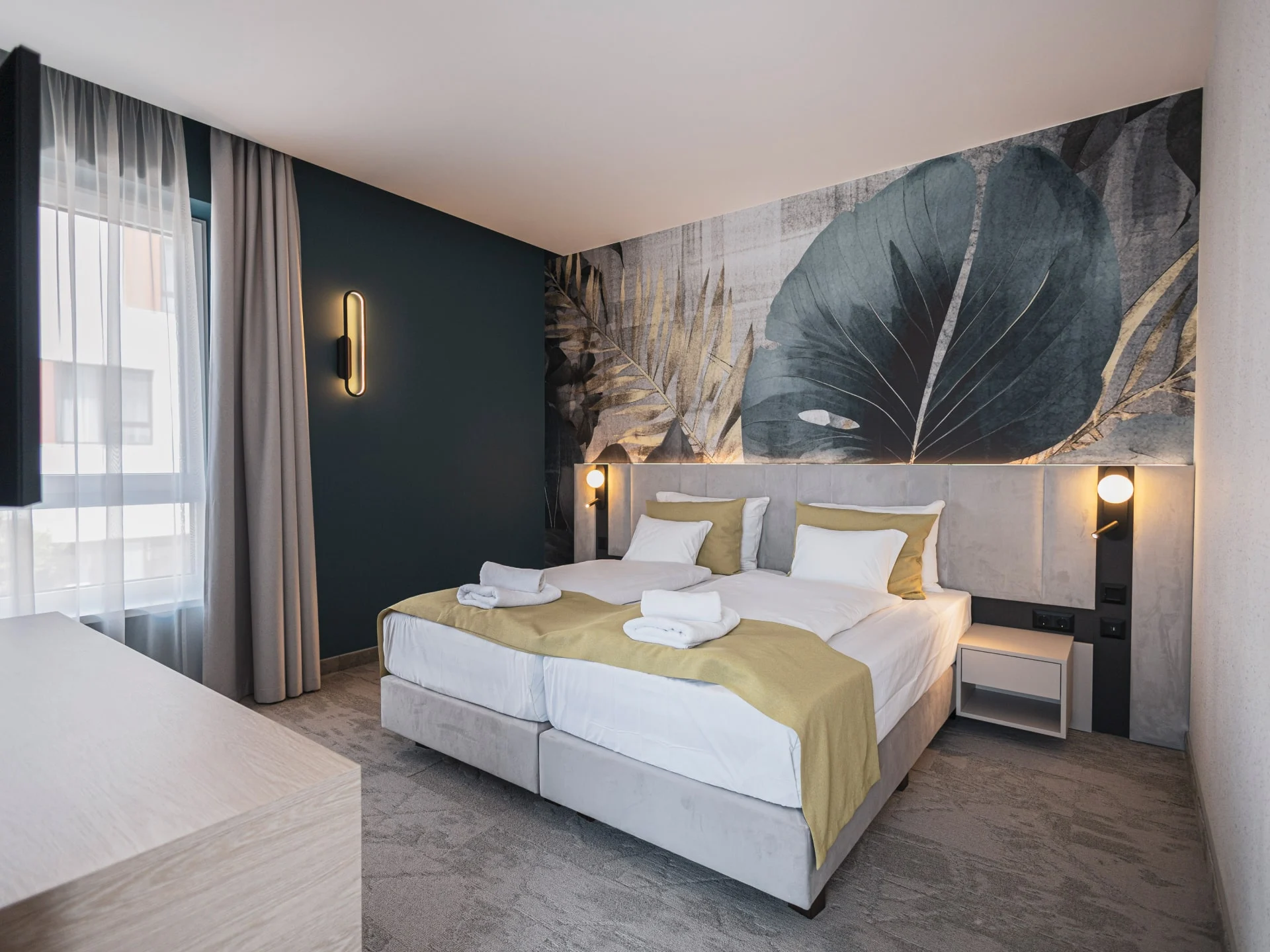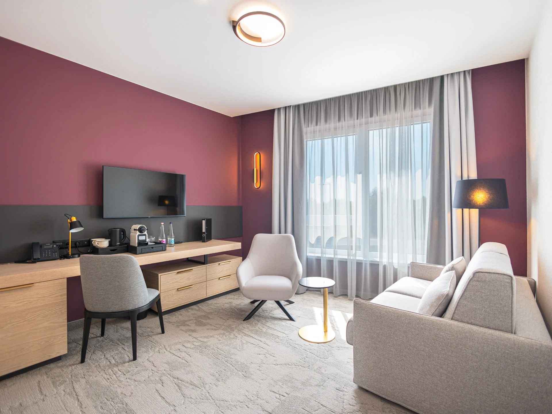 Step into your room and you’ll notice the difference immediately. Clean lines, contemporary design, and a sense of quiet comfort make it easy to unwind after a long day. It’s not just about aesthetics—the rooms are thoughtfully equipped to make your stay effortless, whether you're catching up on work or simply recharging.